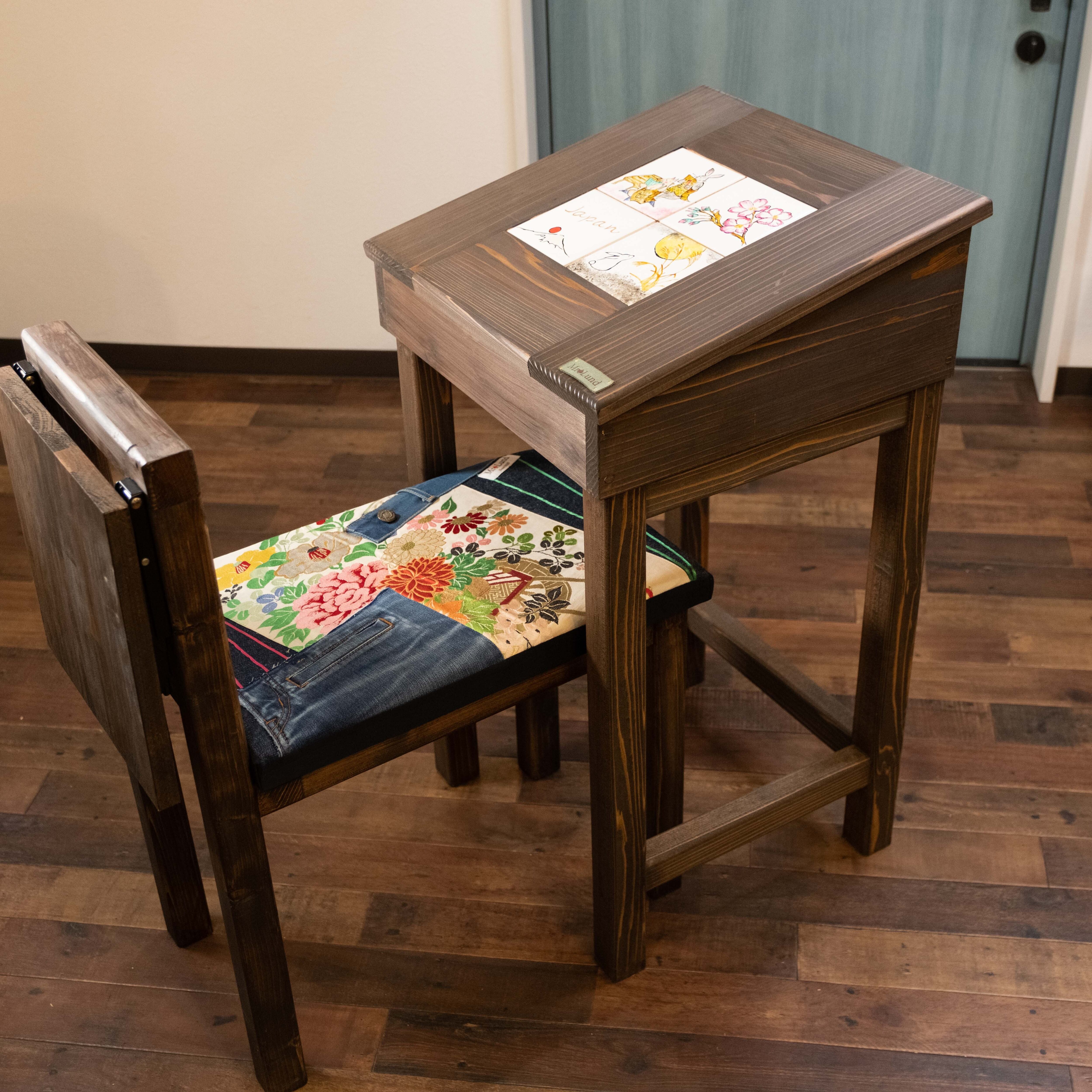 The Mr,Lund "Solitude Art Desk MIYABI "is a lift - up desk made of cedar wood, carefully handcrafted one by one. The desktop is adorned with four different hand-painted tiles that stimulate your artistic senses and soothe your mind.