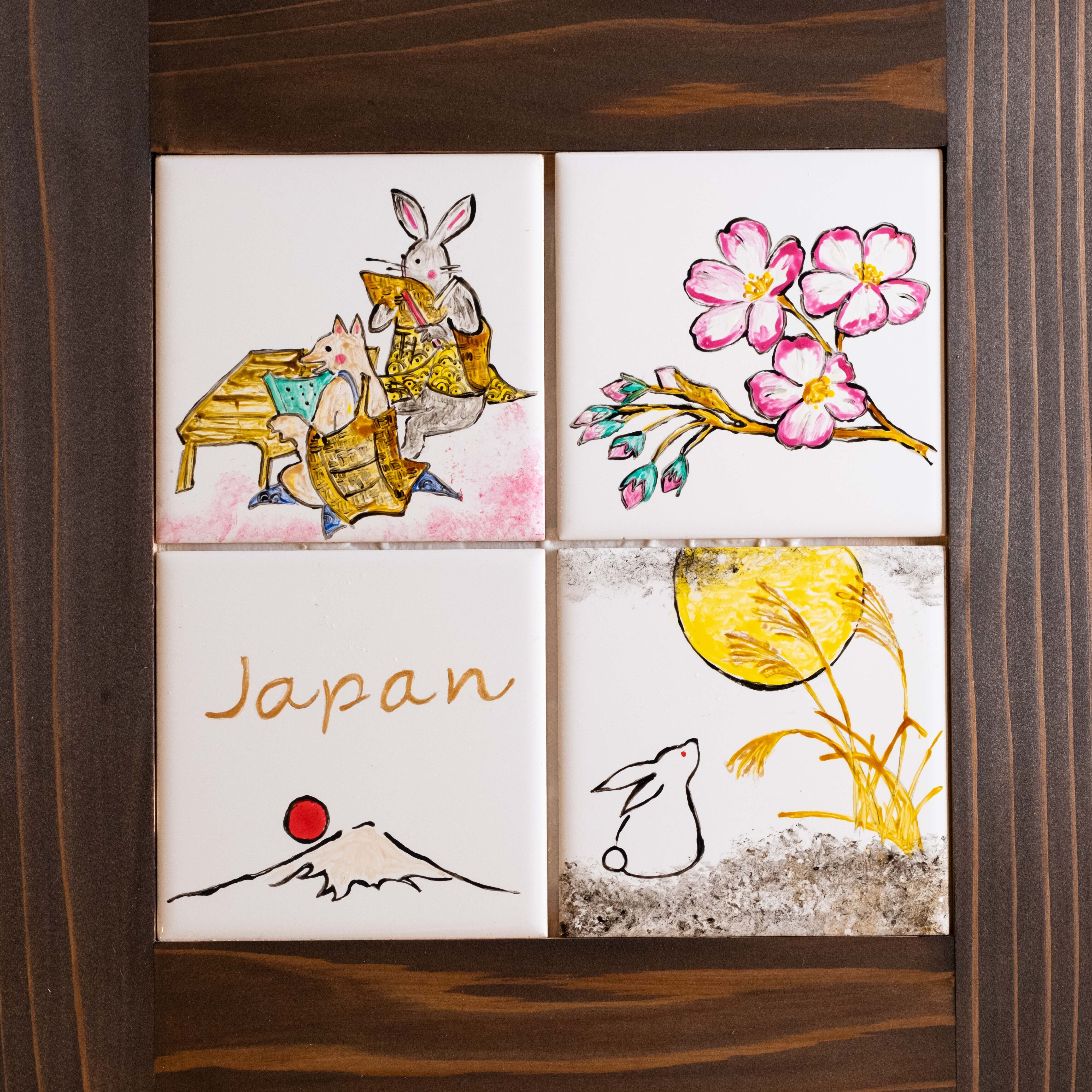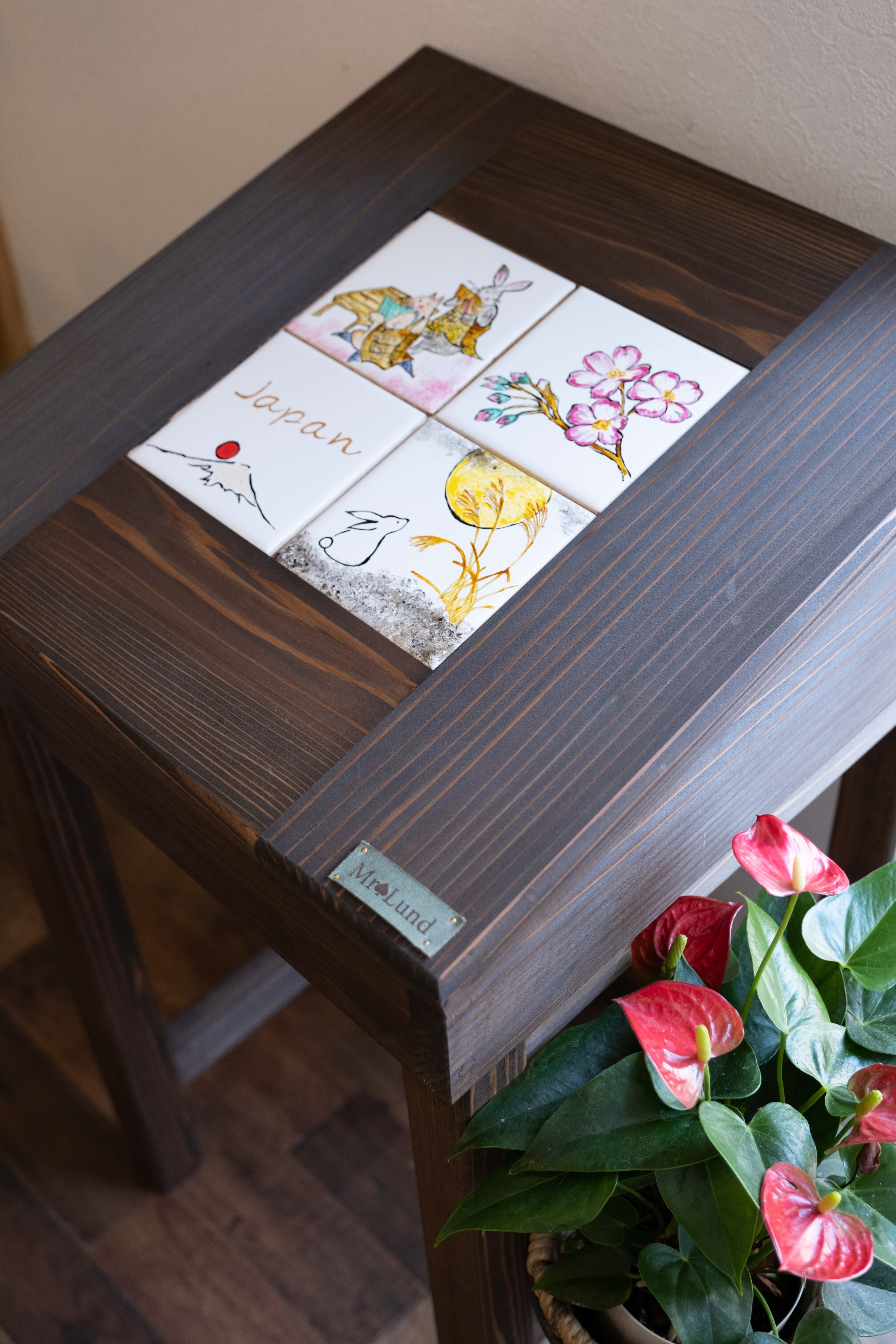 天板には4枚のそれぞれ違う手書きのタイルが貼られており、あなたの芸術的な感覚を刺激し 心を癒してくれます。
